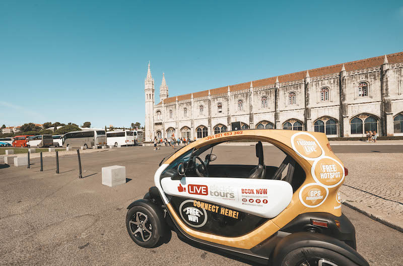 I decided to accept the challenge of Live Electric Tours and be a tourist in my city for a day. Live Electric Tours is a pioneer company worldwide, is the only that offers 100% electric cars with a live video transmission system for social networks, WiFi and Hotspot free and even a GPS with guide. First, it’s important for me to say that I only accepted this challenge because the cars are totally eco-friendly, as a resident of Lisbon’s historical zone, this is a very important factor for me since I feel in the first hand the negative impact of many cars or TukTuk’s non-electric who cause in the center of the city so much atmospheric and noise pollution. The cars are very quiet, you have to be careful with the pedestrians, usually they don’t even realize that the car is approaching.